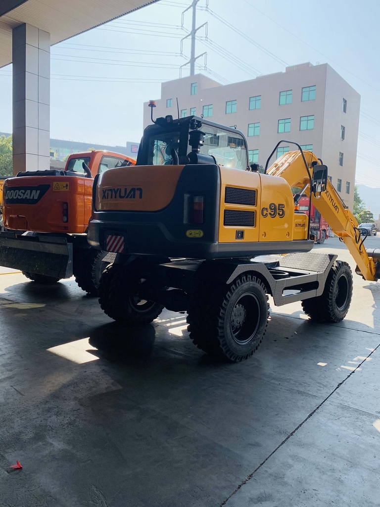 Máy xúc đào bánh lốp XinYuan có các options đi kèm gồm : Búa phá bê tông, kẹp gỗ, đầm rung …